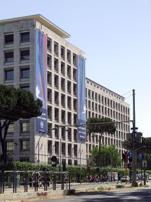 Le siège de l'Organisation pour l'alimentation et l'agriculture coordonne des initiatives mondiales concernant la sécurité alimentaire et le développement agricole.