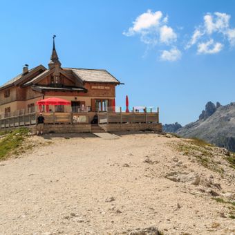 Giovanni Piaz a établi ce refuge de montagne en 1913, le nommant d'après Paul Preuss, pionnier du développement de l'escalade libre.