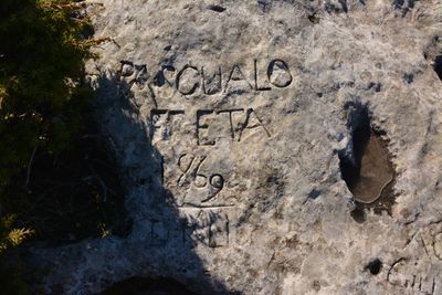 Tavola dei briganti, Inscription médiévale sur le Mont Cavallo à Sant'Eufemia a Maiella, Italie.