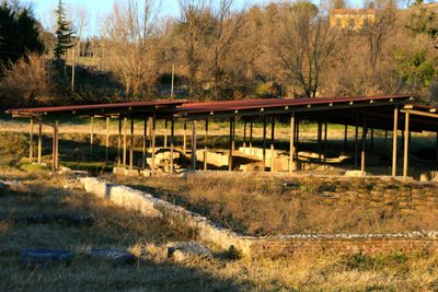 Septempeda est un établissement romain dont les ruines incluent des structures résidentielles, des thermes, des murs défensifs et des portes d'accès répartis sur une vaste zone. Les vestiges révèlent des sols en mosaïque, des colonnes et d'autres éléments architecturaux qui illustrent l'organisation et la construction de l'établissement.
