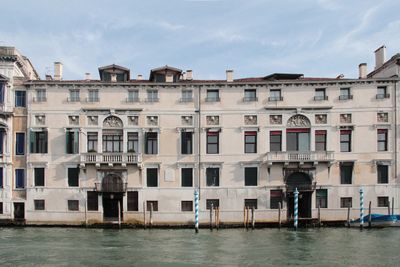 Le Palazzo Mocenigo présente une façade monumentale le long du Grand Canal avec plusieurs étages et des détails architecturaux caractéristiques du style vénitien.