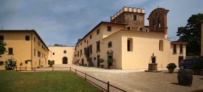Le château illustre les traditions architecturales médiévales de la Toscane à travers sa structure fortifiée dans la région viticole.