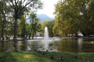Piazza Dante est une place publique pres de la gare de Trento avec un monument central dedie au poete Dante Alighieri entoure de coniferes. Un lac entoure le monument ou nagent des cygnes toute l'annee.