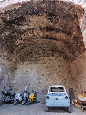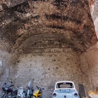 Deux des chambres voûtées restent en bon état et servent actuellement d'espaces de stockage, accessibles par une cour près de Via Torre della Catena.