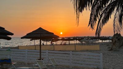 La plage Caribe s'étend le long de la côte sicilienne avec du sable doré et des eaux méditerranéennes limpides parfaites pour la natation.