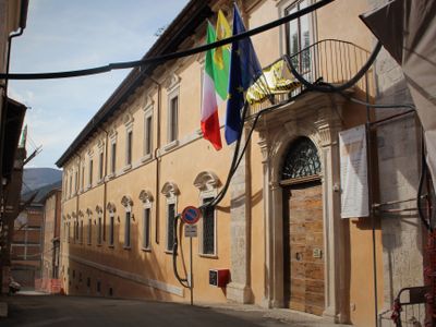 Le palais se trouve sur la Piazza Santa Margherita au coeur de L'Aquila et a subi une restauration majeure apres les dommages sismiques de 2009. L'emplacement central le rend facile d'accès a pied et l'etat restauré signifie que vous pouvez voir le batiment et ses environs en bon etat.