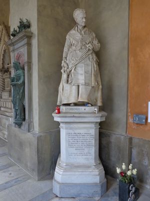 Le Monument a Caterina Campodonico est une oeuvre en marbre au Cimetiere de Staglieno a Genes qui represente la marchande ambulante tenant des chapelets de noisettes et de beignets, representant sa vie vendant aux marches. La figure se dresse parmi de nombreux autres mausoles du dix-neuvieme siecle dans le portique inferieur ouest du cimetiere.