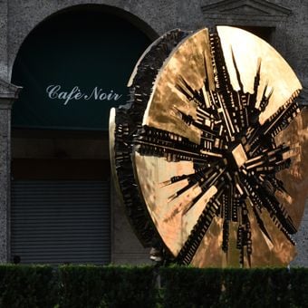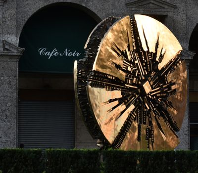 Grande disco, Sculpture en bronze sur Piazza Meda, Milan, Italie.