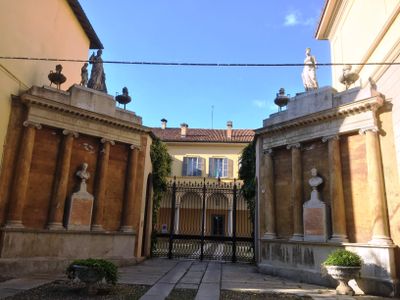 Le Palazzo Malaspina est une residence neoclassique au centre de Pavia avec deux facades contrastantes et une distribution interieure formelle. L'entree sur la Via Malaspina presente un portail en fer forge encadre par des colonnes decoratives et des bustes en marbre.