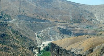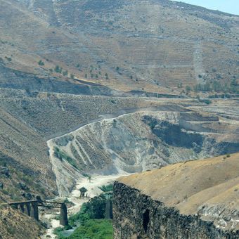 Le Yarmouk est un affluent important qui s'écoule à travers des gorges profondes dans le paysage. Il rejoint le Jourdain tout en servant de frontière naturelle entre les pays qui l'entourent.