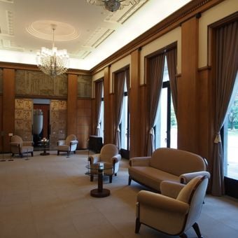 Le Prince Asaka a commandé cette résidence en 1933 après son retour de France, intégrant des créations des artistes français Henri Rapin et René Lalique.