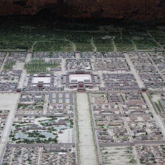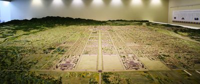 La ville s'appuyait sur son terrain environnant et des principes tirés de la géomancie plutôt que de construire des murs défensifs malgré son rôle de capitale. Chaque parcelle suivait un système fixe avec des lots de 30 mètres sur 15, ce qui permettait une répartition égale des terres.