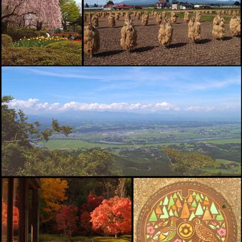 Oshu est un centre administratif régional de la préfecture d'Iwate, au nord du Japon, étendu sur une vaste plaine entre deux chaînes de montagnes. La rivière Kitakami traverse la zone du nord au sud, divisant le paysage en vallées douces et collines boisées.