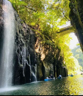 Takachiho est une ville de montagne de la Préfecture de Miyazaki, connue pour son impressionnant canyon aux falaises volcaniques et une cascade qui plonge dans des bassins émeraude. Le paysage est façonné par les éruptions du Mont Aso proche et offre aux randonneurs et amoureux de la nature des points de vue remarquables.