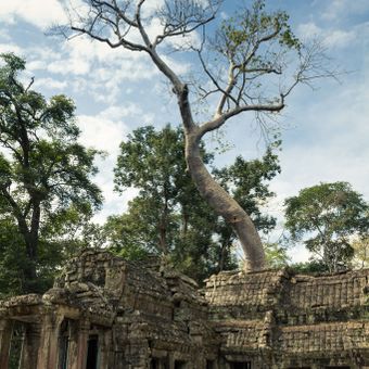 Un roi de l'Empire khmer a construit le temple à la fin du XIIe siècle comme monastère et lieu d'enseignement, le dédiant à sa mère. Après le déclin de l'empire, le complexe a été abandonné et la jungle a poussé à travers les bâtiments.