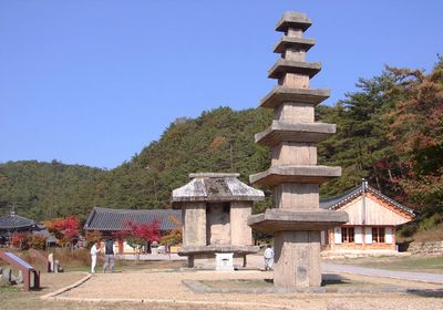 Les pagodes affichent des motifs géométriques et des formes rarement vus ailleurs dans les temples coréens, créant un caractère visuel distinctif sur l'ensemble du site. Cette variété de structures en pierre et brique façonne la façon dont les visiteurs expérimentent le lieu.