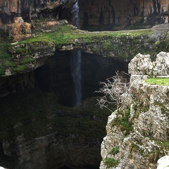 La cascade du gouffre de Baatara chute de 255 mètres à travers trois ponts naturels calcaires dans un système de grottes.