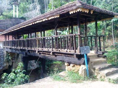 Le pont en bois Bogoda est une passerelle en bois traversant la rivière Gallanda Oya avec une structure de toit et des méthodes de construction traditionnelles. La structure étroite relie les deux rives entièrement en bois.