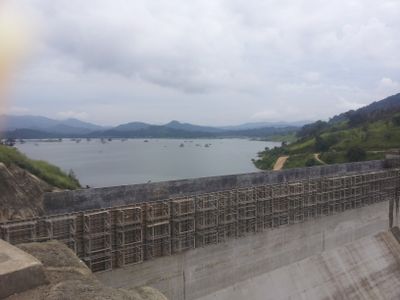 Le barrage de Moragahakanda traverse la rivière Amban avec une hauteur de 65 mètres et crée un réservoir stockant 521 millions de mètres cubes.