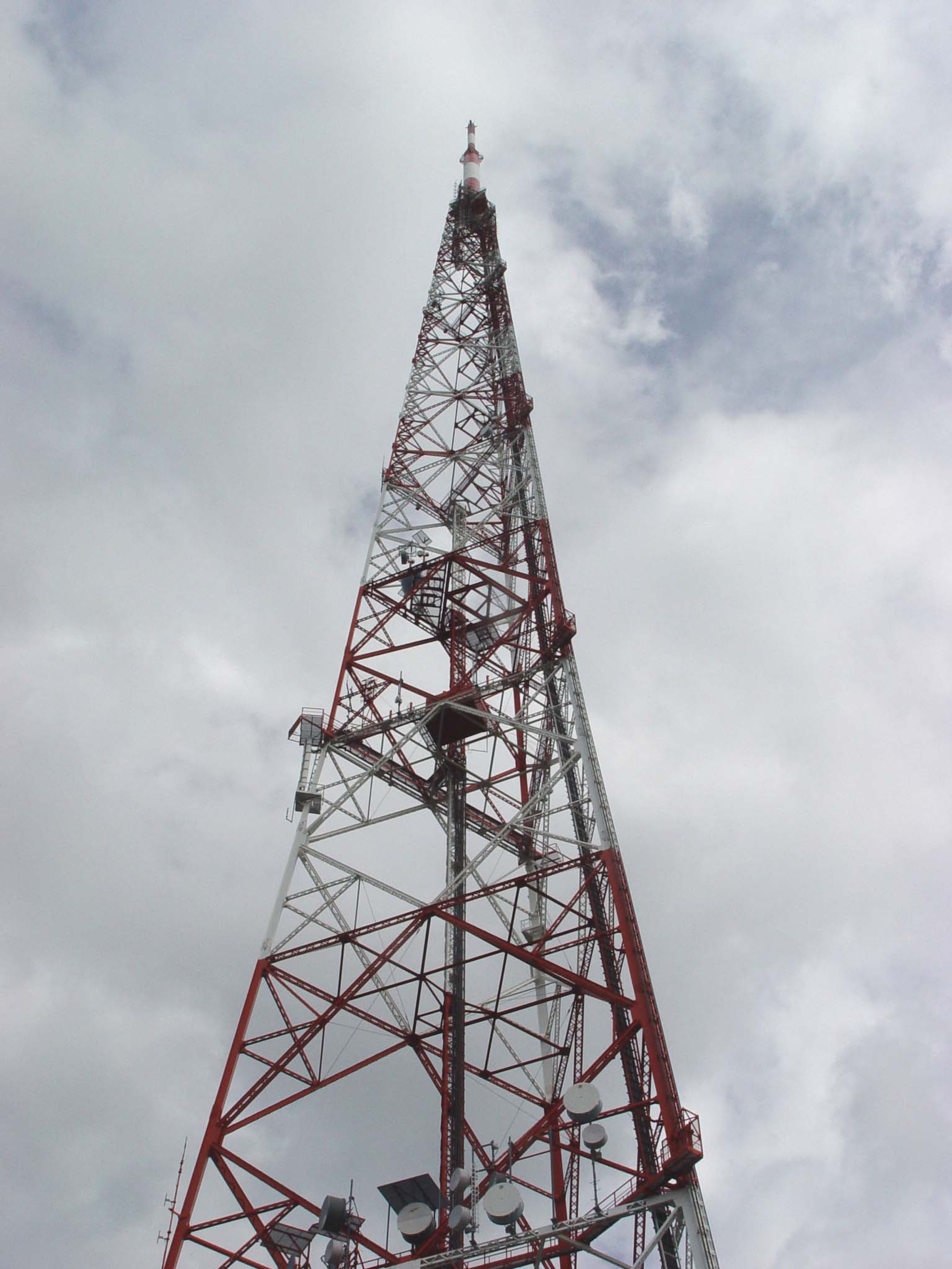 L'Émetteur de Dudelange s'élève à 285 mètres de hauteur avec une structure en treillis d'acier, équipée d'antennes pour la transmission de signaux radio et télévision dans toute la région luxembourgeoise.
