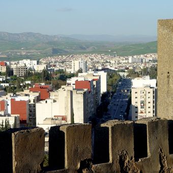 Taza est une ville marocaine divisée entre deux niveaux distincts: la medina ancienne bâtie sur des terres plus hautes avec des rues sinueuses et la nouvelle ville basse développée au début du 20e siècle. Les deux parties se connectent par des chemins escarpés, créant un espace où l'ancien et le nouveau restent visuellement séparés.