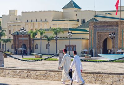 La résidence officielle du roi du Maroc s'étend sur de vastes terrains avec de nombreux bâtiments, jardins et une grande esplanade nommée mechouar.
