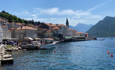 Perast est une ville côtière de la baie de Kotor qui s'étire le long de l'eau avec des maisons en pierre et des églises aux caractéristiques architecturales vénitiennes. La localité s'étend entre la baie et des collines boisées, avec deux îlots distincts juste au large.