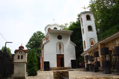 L'église Saint-Jean-Baptiste se dresse dans le quartier Kapištec de Skopje avec son architecture orthodoxe et son clocher caractéristique.