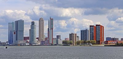 Kop van Zuid est un quartier urbain moderne sur la rive sud de Rotterdam, caractérisé par de hauts immeubles de bureaux et d'habitation avec un ensemble diversifié de boutiques et restaurants. Le quartier se connecte au centre-ville par le pont Erasmus distinctif et s'étend le long du waterfront avec des parcs et des espaces publics.
