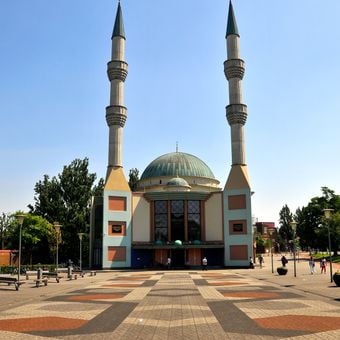 La Mosquée Mevlana présente un minaret de 33,8 mètres et associe des éléments architecturaux néerlandais contemporains aux principes du design islamique traditionnel.