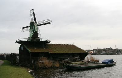 Het Klaverblad fonctionne comme une scierie avec des voiles rotatives, transformant le bois selon les techniques traditionnelles néerlandaises à Zaanse Schans.