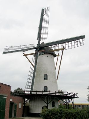 Toren van de Nederlands Hervormde Kerk. Fors bouwwerk, met haakse steunberen en dubbele galmgaten. Traptoren met decoratieve bekroning