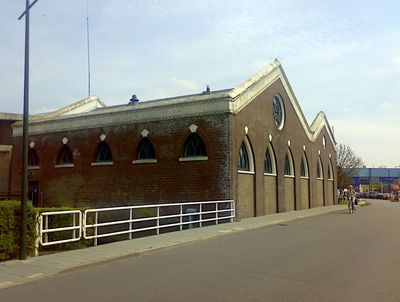 Gemaal de Leeghwater est une station de pompage située à la confluence de deux canaux majeurs, dotée d'un bâtiment circulaire principal et de deux ailes latérales. L'installation abrite deux moteurs diesel qui alimentent des pompes centrifuges capables de déplacer de grandes quantités d'eau chaque minute.