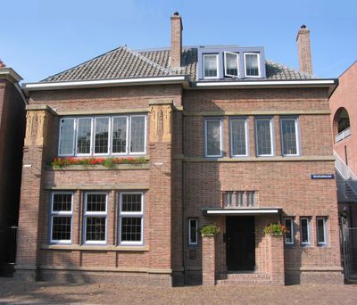 Herenhuis in de stijl van het rationalisme met op oriëntaalse voorbeelden geïnspireerde ornamenten uit 1904-05, gebouwd voor het echtpaar moltzer-boeke
