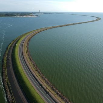 Le Houtribdijk s'étend sur 26 kilomètres dans la région de l'IJsselmeer, créant une séparation entre les lacs IJsselmeer et Markermeer.