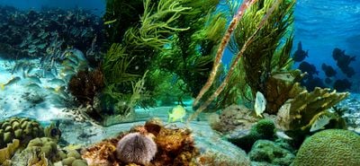 L'écosystème marin présente une couverture corallienne plus importante et moins de macroalgues que les autres récifs caribéens, abritant des populations de thons, marlins et requins-baleines.