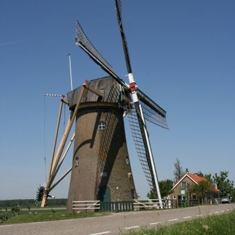 Boerderij, bestaande uit een gepleisterd woonhuis onder pannen zadeldak, evenwijdig aan de dijk.