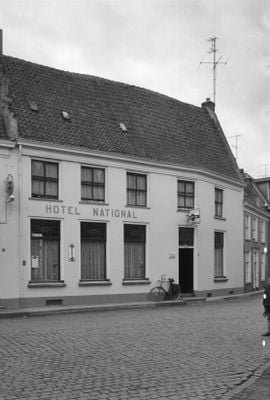Breed pand met zadeldak tussen puntgevels, Rijksmonument op Roggestraat 17