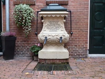 Lamme Huiningegasthuis, pomp in tuin, Rijksmonument op A-Kerkstraat 2