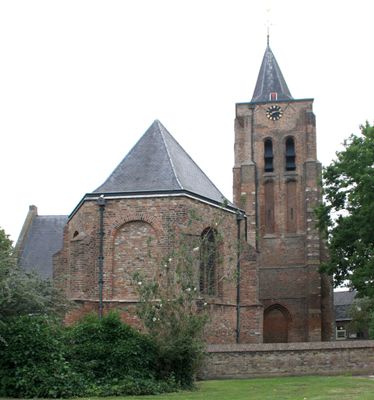 Toren van de Nederlands Hervormde Kerk. Fors bouwwerk, met haakse steunberen en dubbele galmgaten. Traptoren met decoratieve bekroning, Rijksmonument op Raadhuisstraat 15
