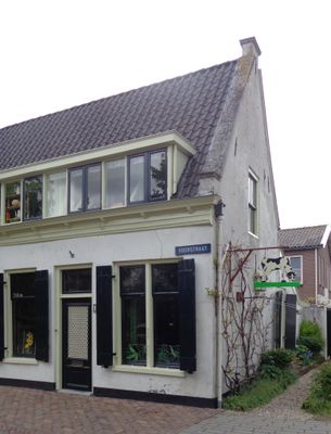 Pand met lage gepleisterde lijstgevel, Rijksmonument op Voorstraat 25