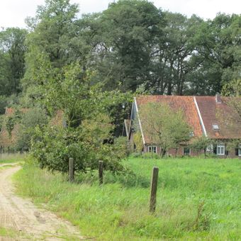 Bij de molen een goede saksische boerderij met houten puntgevel en empireramen