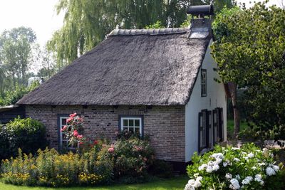 Boerderij uit het derde kwart van de 19e eeuw. Rieten wolfdak, voorgevel met vlechtingen en vensters met 6-ruitsschuiframen uit de bouwtijd
