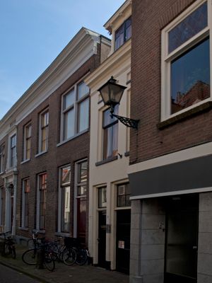 Breed pand met gevel met rechte kroonlijst en omlijste middenpartij, building in Zwolle, Netherlands