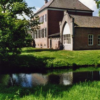 Strijdhoef: toegang tot het omgrachte voorplein van het huis, bestaande uit een dam met ijzeren paaltjes en kettingen en een bakstenen poortgebouw. Kasteel de Strijdhoef
