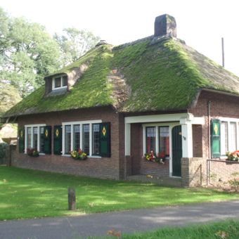 Kleine veluwse boerderij onder rieten wolfsdak, eerste helft 19e eeuw
