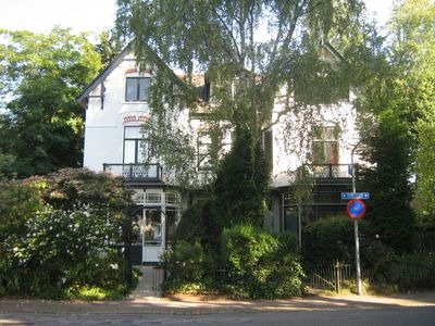 Dubbele villa met tuinhek voor nummer 29, gebouwd in eclectische bouwtrant gecombineerd met chaletstijl-elementen, villa in Hilversum, Netherlands
