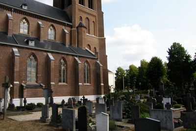 Sint Janskerk: ommuurde kerkhof met smeedijzeren poort en verschillende graftekens