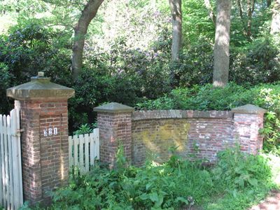 Laag Wolfheze: toegangshek met zijmuurtjes, Rijksmonument op Utrechtseweg 321, Doorwerth