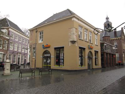 Huis dat als geisoleerd blok op het zuivelplein staat, op de plaats waar zich vroeger de waag bevond